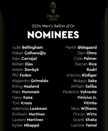 Para nomine Ballon d'Or dipilih dari hasil penilaian terhadap performa di atas lapangan dalam periode yang dimulai 1 Agustus 2023 hingga 31 Juli 2024 lalu.